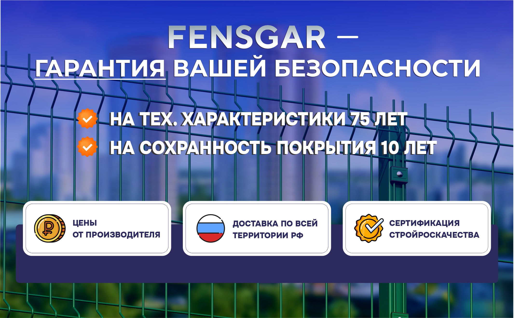 FENSGAR - это высокий уровень надёжности на любом этапе сотрудничества: от обработки заявки и производства систем ограждения до поставки и постгарантийного обслуживания